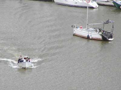 Lá fui encontrar-me como ele, numa das docas de Lisboa, ( essa bela localidade com o seu castelo altaneiro), e encontrei este quadro.: O manel ligava o motor, acelerava , acelerava e nada; Para meu espanto reparei que o barco teve um ligeiro tremor, e disse: